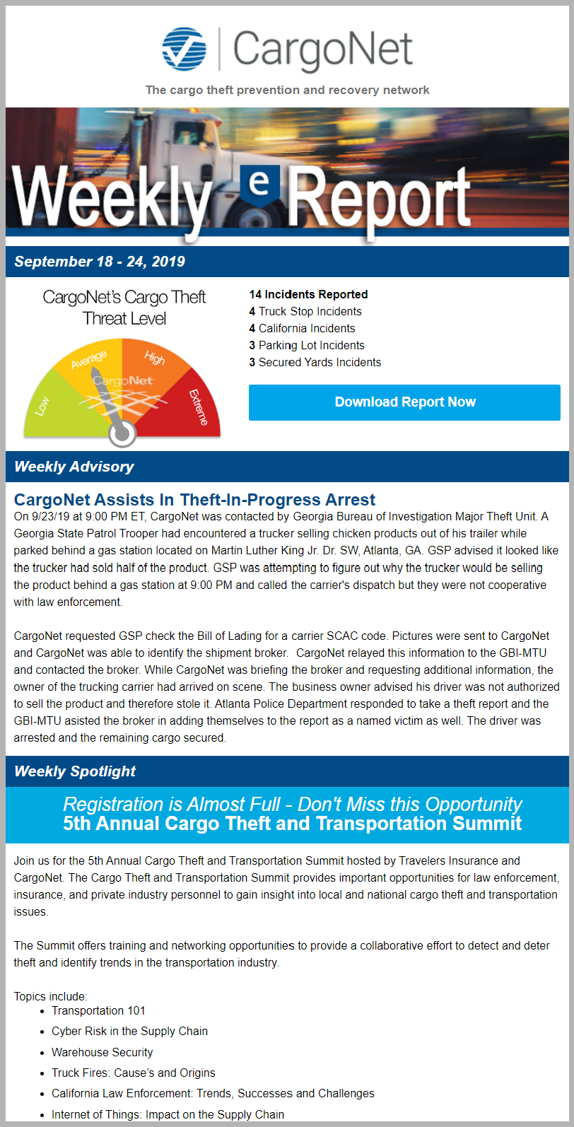 Member Portal - The member portal aggregates our weekly, monthly, quarterly and annual cargo theft reports, truck stop theft locations, webinars, tips and best practices, member discounts, online training and more.