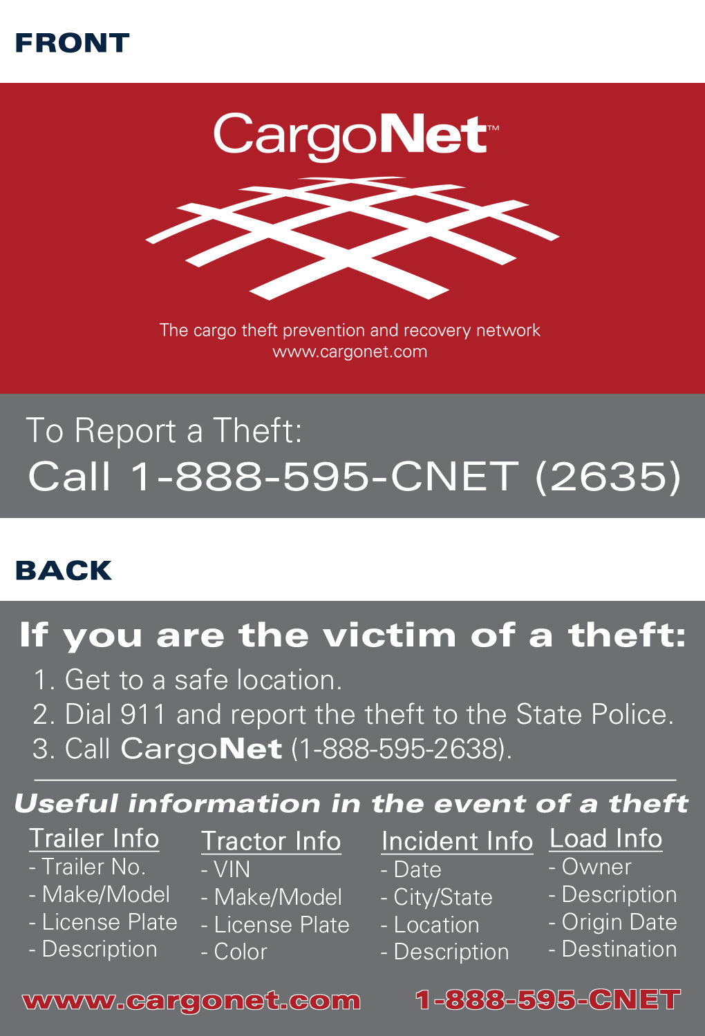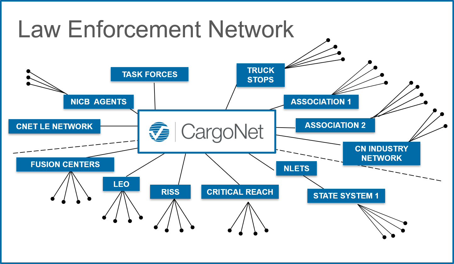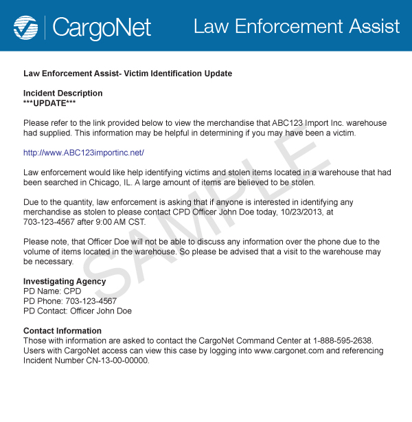 CargoNet 2.3 – CargoNet’s database receives and integrates cargo theft data from law enforcement, insurers, transportation companies, manufacturers, and retailers. Theft victims, insurers, and law enforcement may enter data online using internal investigation and claims management systems or industry wide databases such as ISO ClaimSearch. Theft victims may also call CargoNet’s 24-hour call center.