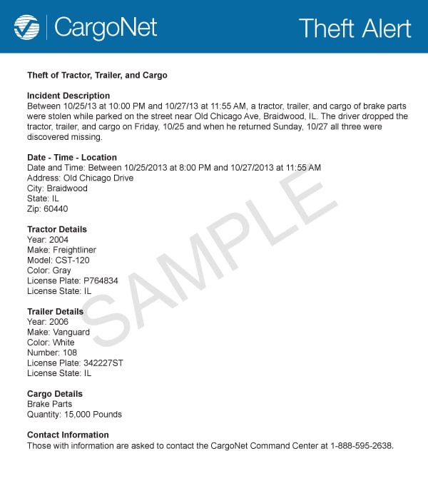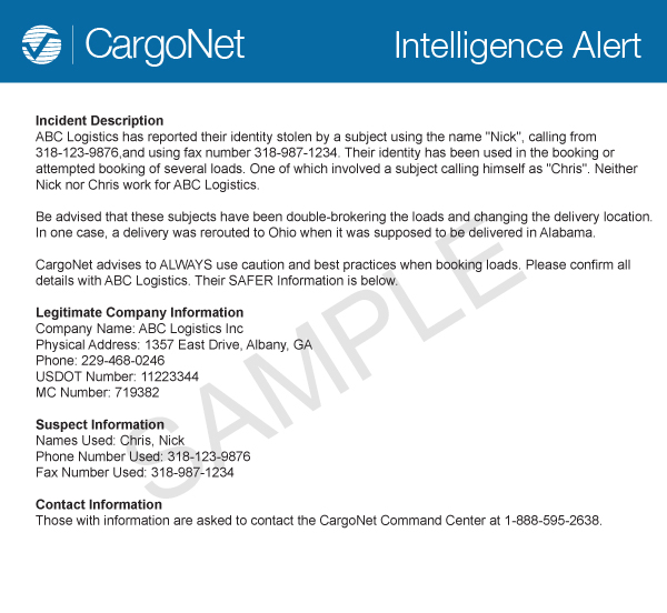 AlertSEARCH - AlertSEARCH provides advanced search functionality for actionable intelligence within the CargoNet database. It can be utilized to directly reduce your chances of becoming a cargo theft victim. AlertSEARCH allows you to search CargoNet's extensive archive of alerts by any suspect name, phone number, email address, and much more. Ultimately, anything you can think of can now be searched and used to help you avoid identity theft, fictitious pickups, other transportation-related scams, and aid in your carrier validation efforts. Learn More