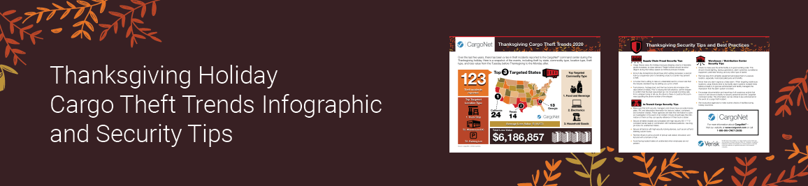 JERSEY CITY, N.J. — Each holiday period, cargo thieves seek to exploit the abundance of loaded trailers and warehouses that will remain unattended for an extended period of time. In order to inform industry professionals of the highest theft risks, CargoNet reviewed trucking theft data from the Tuesday prior to Thanksgiving to the Monday following Thanksgiving for 2015 to 2019.